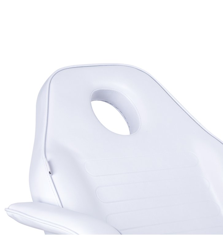 Wysokość fotela można dostosowywać w zakresie 62-75 cm bez użycia rąk za pomocą pompy hydraulicznej. Pozwala to na komfortowe korzystanie ze sprzętu osobom o różnym wzroście i umożliwia dostosowanie go do indywidualnych potrzeb zarówno klienta, jak i osoby wykonującej zabieg. Zastosowany mechanizm jest bardzo trwały i niezawodny. Dzięki otworowi w zagłówku, który jest ukryty pod odpowiednio wyprofilowaną poduszką, fotel doskonale sprawdzi się również przy zabiegach przeprowadzanych na plecach, takich jak masaże.