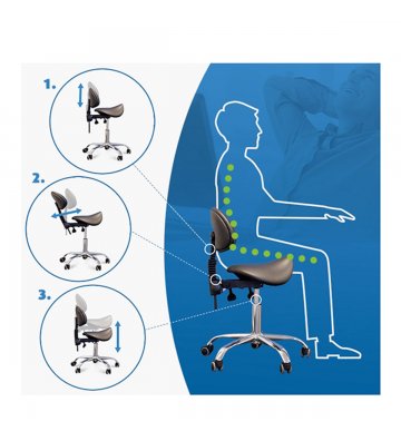 The Giovanni 1005 podiatry stool with its unique shape and ergonomic backrest will work great in professional offices. The innovative backrest design ensures comfort during treatments in various positions, taking care of the comfort of both the client and the person performing the service, making it an ideal choice for everyday work .