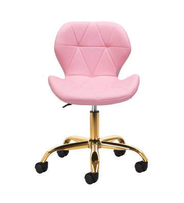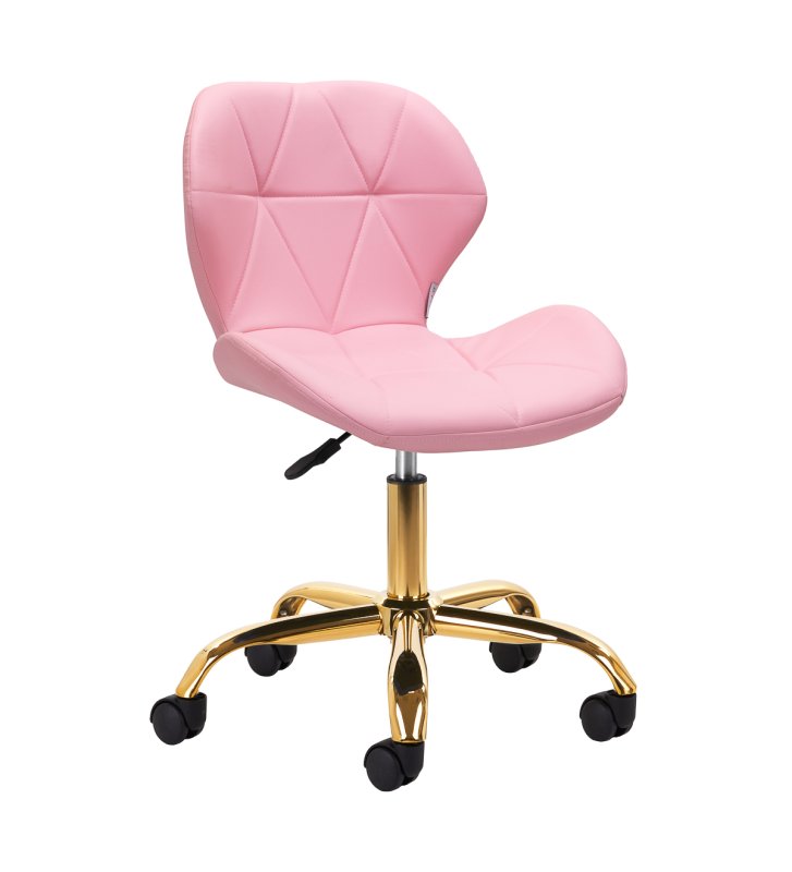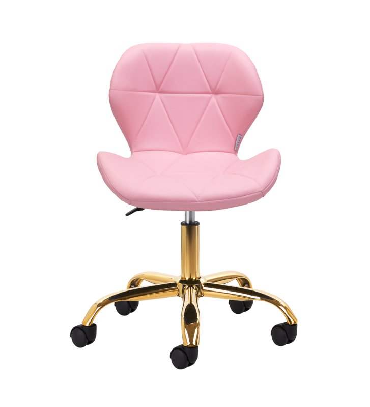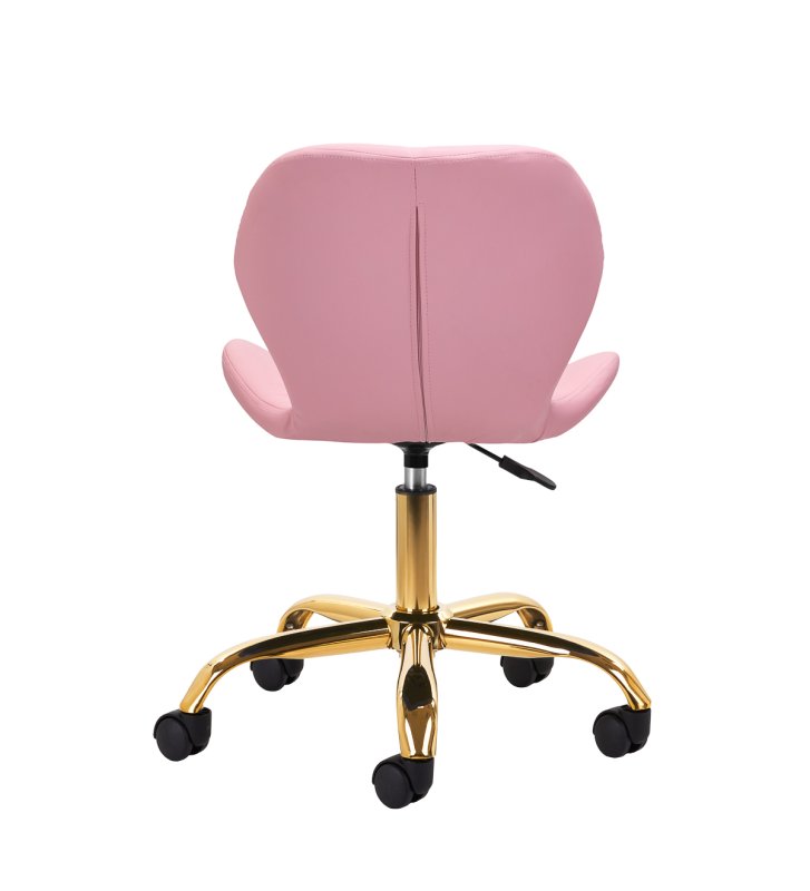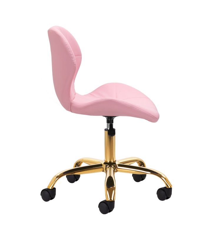 The five-star base in shades of gold is equipped with plastic wheels that provide significant mobility, allowing the furniture to be moved freely around the office. The seat of the stool is upholstered with a pleasant-to-touch imitation leather in an elegant shade of pink. The material used guarantees durability, resistance to moisture and ease of cleaning . The whole is complemented by stylish stitching that emphasizes the modern design.