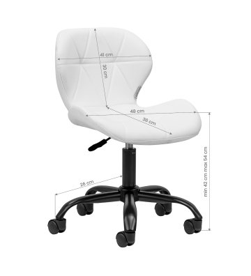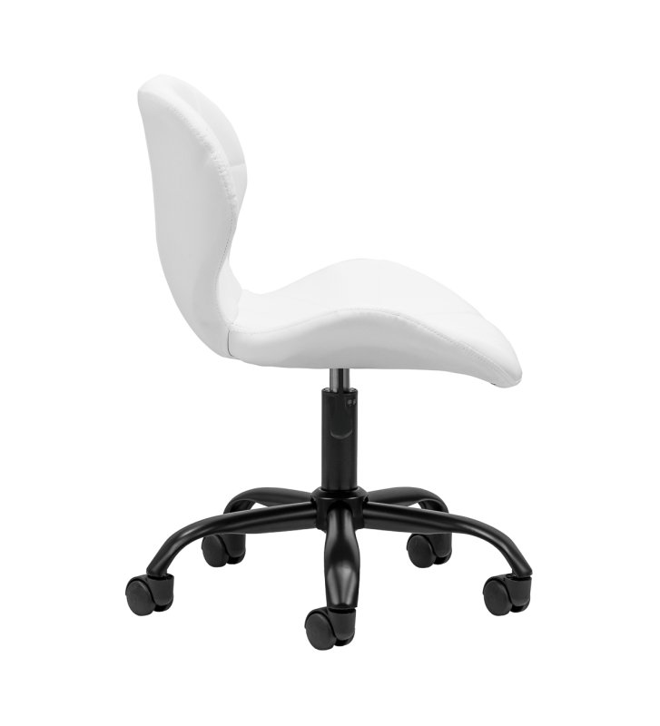 The five-star base in shades of gold is equipped with plastic wheels that provide significant mobility, allowing the furniture to be moved freely around the office. The seat of the stool is upholstered with a pleasant to the touch imitation leather in an elegant shade of white. The material used guarantees durability, resistance to moisture and ease of keeping clean . The whole is complemented by stylish stitching that emphasizes the modern design.