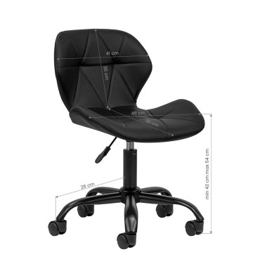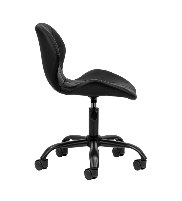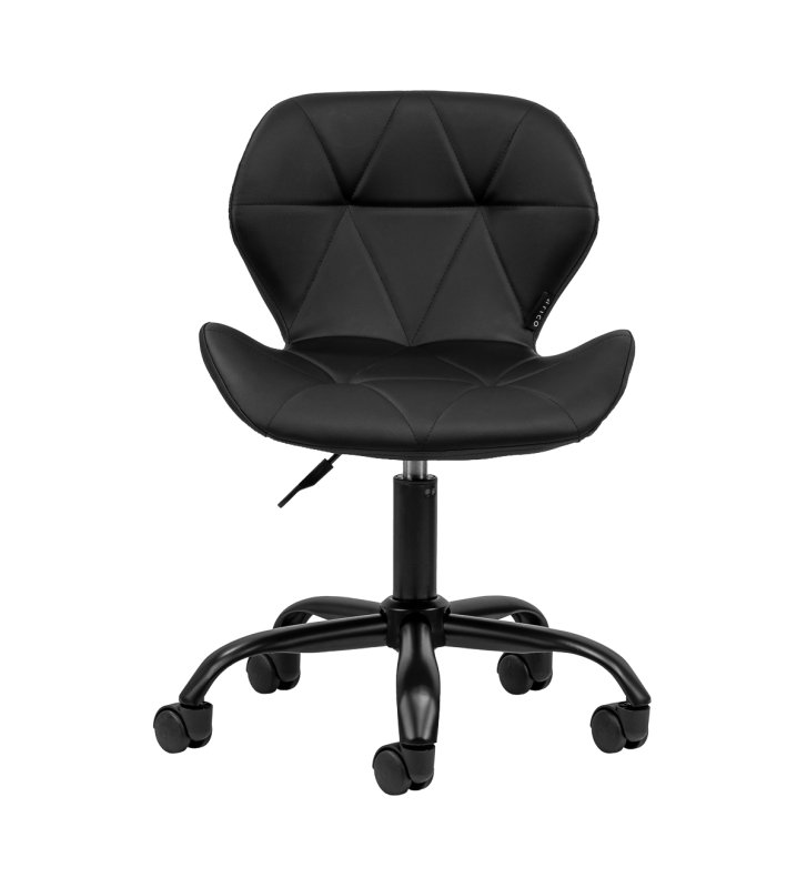 The five-star base in shades of gold is equipped with plastic wheels that provide significant mobility, allowing the furniture to be moved freely around the office. The seat of the stool is upholstered with a pleasant-to-touch imitation leather in an elegant shade of black. The material used guarantees durability, resistance to moisture and ease of keeping clean . The whole is complemented by stylish stitching that emphasizes the modern design.