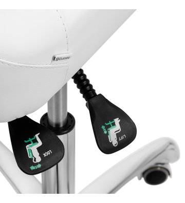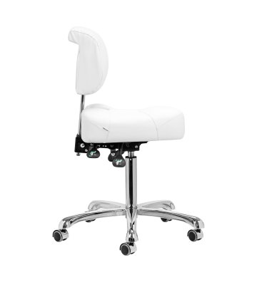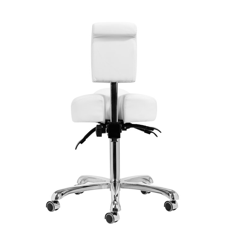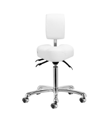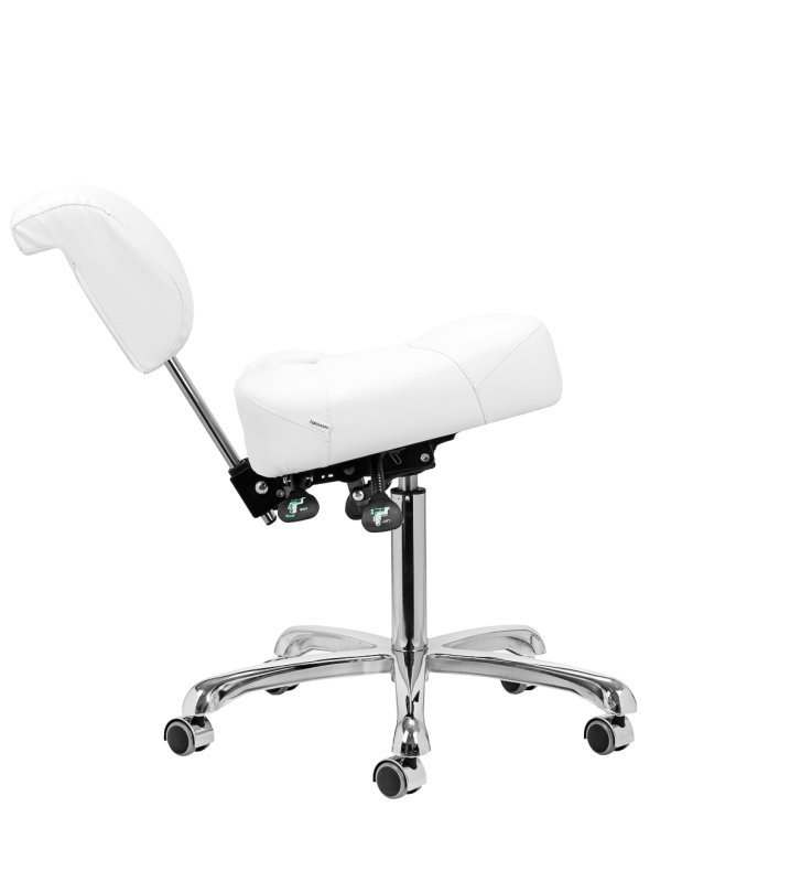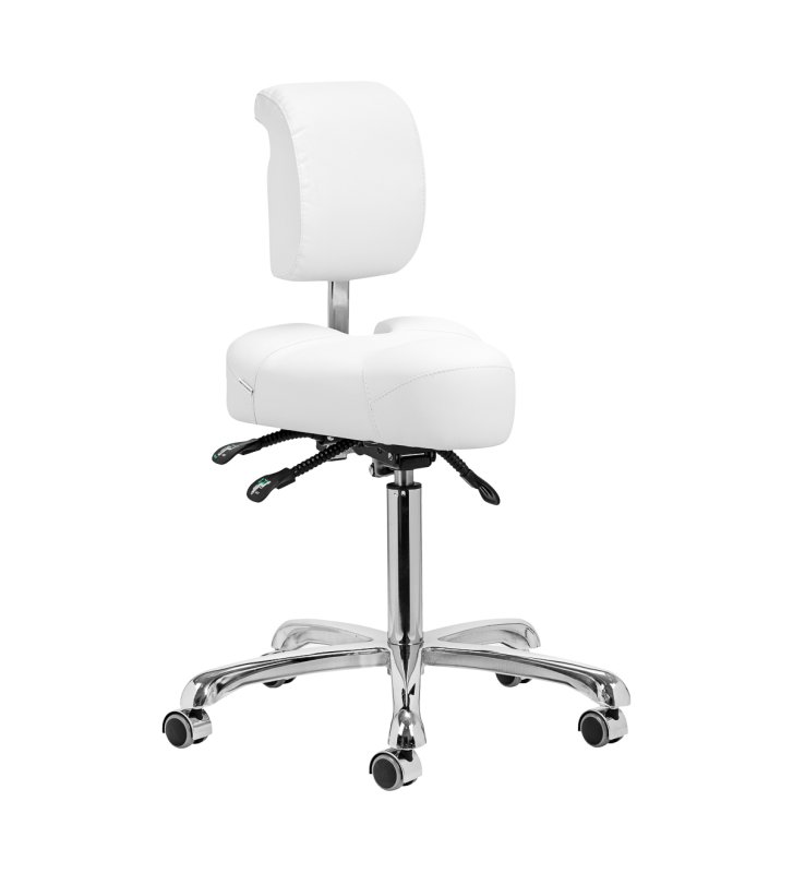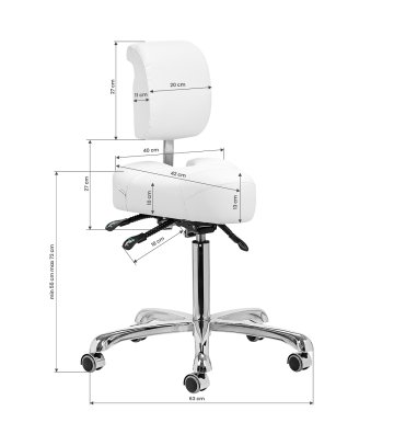 The possibility of height adjustment in the range of 55-72 cm allows you to take the right position while performing services. Perfectly profiled backrest with adjustment provides optimal support for the lumbar section , minimizing fatigue during long-term work. The full rotation mechanism makes work more effective and comfortable. The stool also has a cradle function with the possibility of locking , which allows for ergonomic body positioning. The seat provides tilt and height adjustment thanks to gas cylinders. Additionally, the height of the backrest can be manually adjusted for full comfort of use.