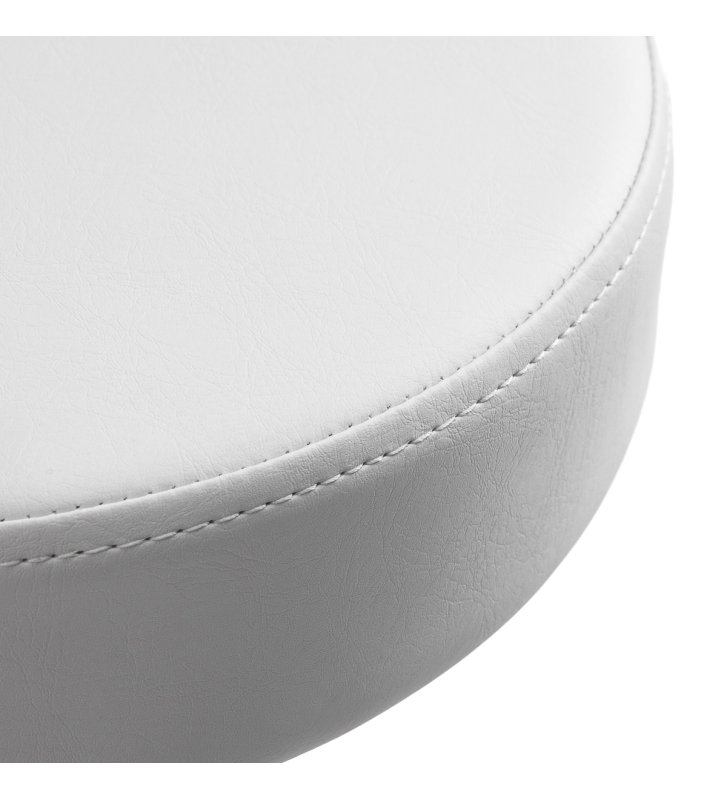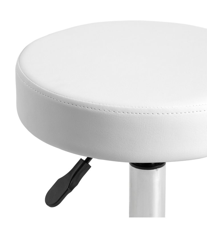 Pięcioramienna podstawa zapewnia stabilność oraz bezpieczeństwo użytkowania, nawet podczas bardziej dynamicznych ruchów i częstych zmian pozycji. Kółka zapewniają swobodę mobilności i umożliwiają płynne przemieszczanie się po gabinecie. Obicie z wytrzymałej skóry syntetycznej w odcieniach bieli jest odporne na codzienną eksploatację i łatwe do utrzymania w czystości. Połączenie elegancji i funkcjonalności sprawia, że taboret AM-310 stanowi niezastąpiony element wyposażenia profesjonalnego miejsca pracy.