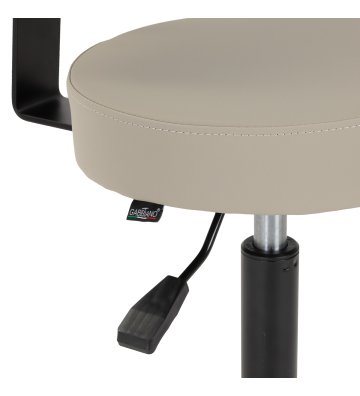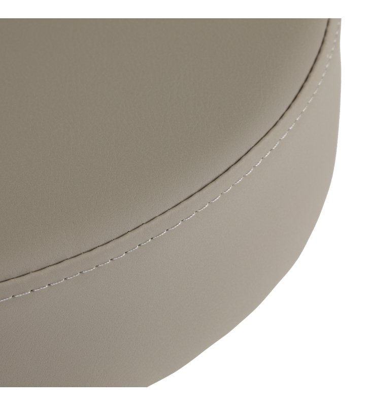 Taboret osadzono na pięcioramiennej, czarnej podstawie z półmatowym wykończeniem, co zapewnia doskonałą stabilność nawet przy intensywnym użytkowaniu. Siedzisko obito wytrzymałą skórą syntetyczną w odcieniach szarości i beżu, odporną na wilgoć, zabrudzenia i codzienną eksploatację, a piankowe wypełnienie utrzymuje swój kształt nawet przy długotrwałym obciążeniu. Nowoczesny, estetyczny wygląd sprawia, że taboret doskonale wpisuje się w profesjonalne wnętrza. To praktyczny i elegancki wybór dla salonów fryzjerskich, kosmetycznych i gabinetów, w których istotne są komfort pracy, solidność wykonania oraz stylowe wyposażenie.