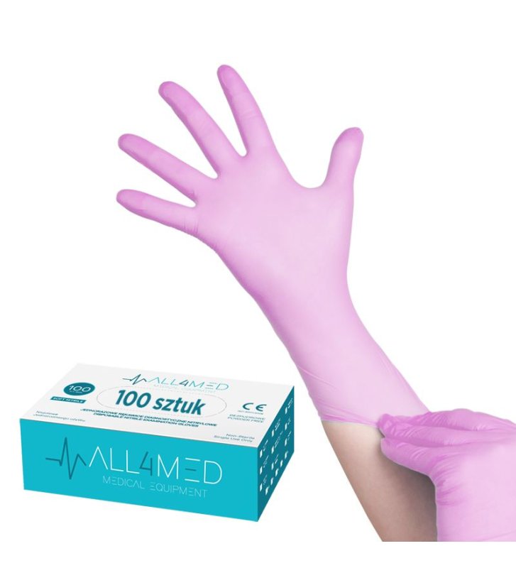 Rękawiczki nitrylowe ALL4MED to produkt najwyższej jakości. Dzięki wysokiej gramaturze są bardzo trwałe i wytrzymałe na pękanie. Zostały dopuszczone do przemysłu spożywczego i kontaktu z żywnością. Rękawiczki nitrylowe ALL4MED są szczelne na smary i oleje, a także tłuszcze. Wykazują także chemoodporność na delikatne substancje chemiczne.