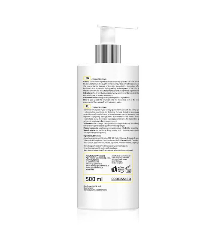 Kremowa emulsja do mycia twarzy oparta na kluczowych dla skóry lipidach zapewniających jej miękkość, elastyczność i odpowiednie nawilżenie. Jej delikatna formuła dokładnie oczyszcza zanieczyszczenia podczas gdy zawarte w niej ceramidy typu 3 oraz 6-II wraz ze skwalanem utrzymują naturalną równowagę barierową skóry. Wspierana działaniem wąkrotki azjatyckiej, beta glukanu, d-panthenolu oraz kwasu hialuronowego zapobiega przesuszeniu, łuszczeniu i szorstkości skóry dodatkowo łagodząc podrażnienia. Nadaje skórze gładkość i delikatność w dotyku, a do tego działa ochronnie przed czynnikami zewnętrznymi.