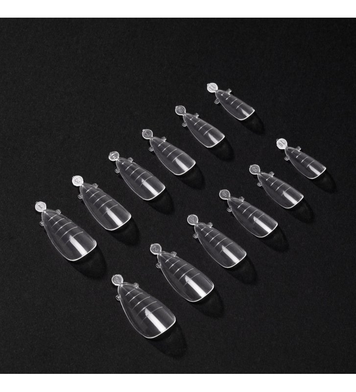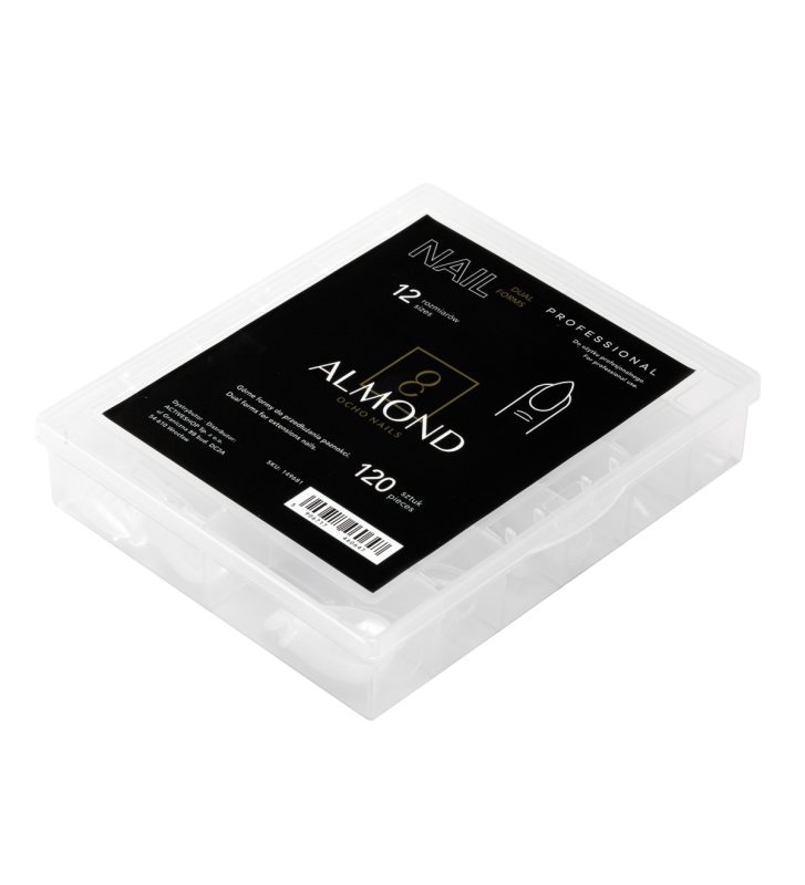 Górne formy w kształcie migdałów wyróżniają się wyjątkową elastycznością i trwałością, co pozwala na komfortową pracę bez obaw o ich uszkodzenie. Pomocnicze linie ułatwiają nadanie paznokciom wybranej długości, a przezroczysty materiał zapewnia skuteczne utwardzanie w lampie UV/LED. 12 rozmiarów pozwala na idealne dopasowanie formy do naturalnej płytki, co ułatwia uzyskanie perfekcyjnego efektu.