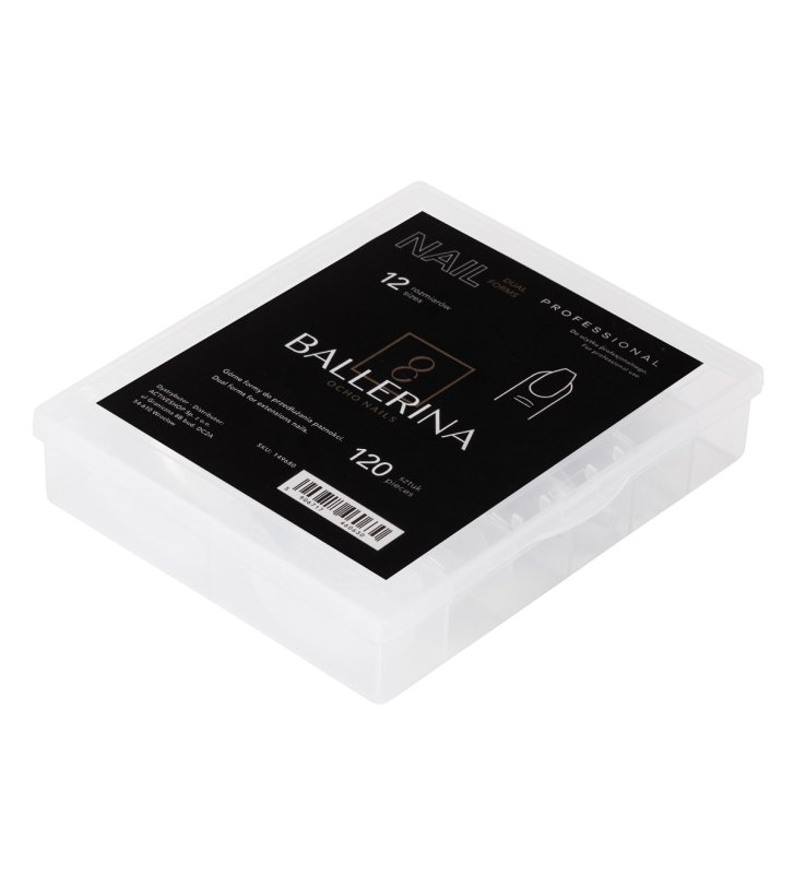 Przezroczyste górne formy ballerina do przedłużania paznokci marki Ocho Nails to nowoczesna alternatywa dla tradycyjnych szablonów. Pozwalają szybko i precyzyjnie uzyskać idealny kształt typu balerina, nadając paznokciom symetrię i perfekcyjny wygląd. To doskonałe rozwiązanie zarówno dla doświadczonych stylistek, jak i osób rozpoczynających swoją przygodę ze stylizacją paznokci.