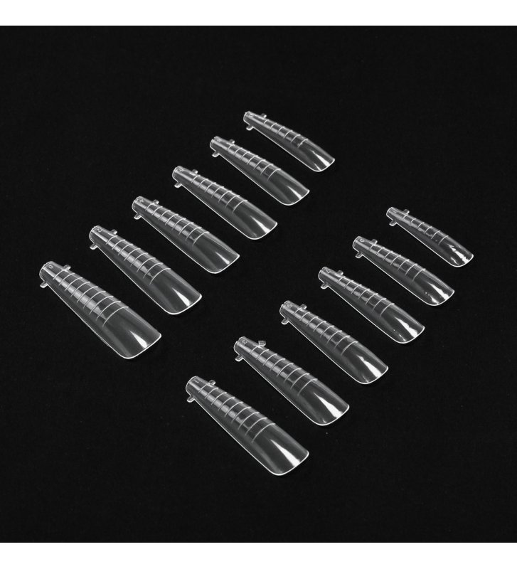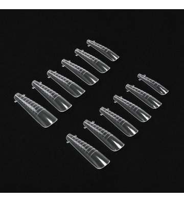 Górne formy w kształcie balerina wyróżniają się wyjątkową elastycznością i trwałością, co pozwala na komfortową pracę bez obaw o ich uszkodzenie. Pomocnicze linie ułatwiają nadanie paznokciom wybranej długości, a przezroczysty materiał zapewnia skuteczne utwardzanie w lampie UV/LED. 12 rozmiarów pozwala na idealne dopasowanie formy do naturalnej płytki, co ułatwia uzyskanie perfekcyjnego efektu.