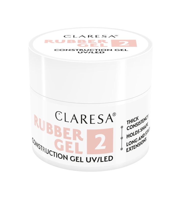 Rubber Gel od Claresa to produkt o wyjątkowych właściwościach. Jego formuła jest gęsta i odporna na temperaturę otoczenia, dzięki czemu doskonale nadaje się do konstrukcji paznokcia i przedłużania płytki. Możesz mieć pewność, że nawet w upalne dni żel będzie zachowywać się tak samo, a Ty zbudujesz perfekcyjny szkielet za każdym razem. Rubber Gel charakteryzuje się także tiksotropią (czyli pamięcią cieczy), co sprawia, że po nałożeniu na paznokieć nie spływa na skórki. Masa przy pracy pędzelkiem doskonale się poziomuje, pozwalając na równomierne rozłożenie produktu nawet osobom początkującym. Żel kryje i koryguje niedoskonałości płytki, dzięki czemu może być stosowany solo, bez użycia lakieru hybrydowego. Wystarczy baza i top. Paleta coverowych odcieni nude z pewnością przypadnie do gustu fankom naturalnych stylizacji.