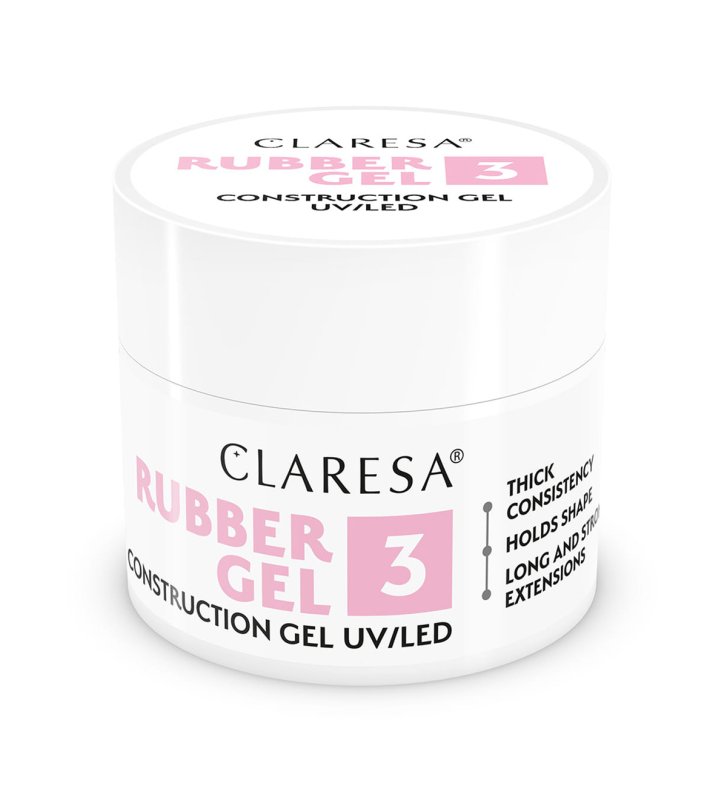 Rubber Gel od Claresa to produkt o wyjątkowych właściwościach. Jego formuła jest gęsta i odporna na temperaturę otoczenia, dzięki czemu doskonale nadaje się do konstrukcji paznokcia i przedłużania płytki. Możesz mieć pewność, że nawet w upalne dni żel będzie zachowywać się tak samo, a Ty zbudujesz perfekcyjny szkielet za każdym razem. Rubber Gel charakteryzuje się także tiksotropią (czyli pamięcią cieczy), co sprawia, że po nałożeniu na paznokieć nie spływa na skórki. Masa przy pracy pędzelkiem doskonale się poziomuje, pozwalając na równomierne rozłożenie produktu nawet osobom początkującym. Żel kryje i koryguje niedoskonałości płytki, dzięki czemu może być stosowany solo, bez użycia lakieru hybrydowego. Wystarczy baza i top. Paleta coverowych odcieni nude z pewnością przypadnie do gustu fankom naturalnych stylizacji.