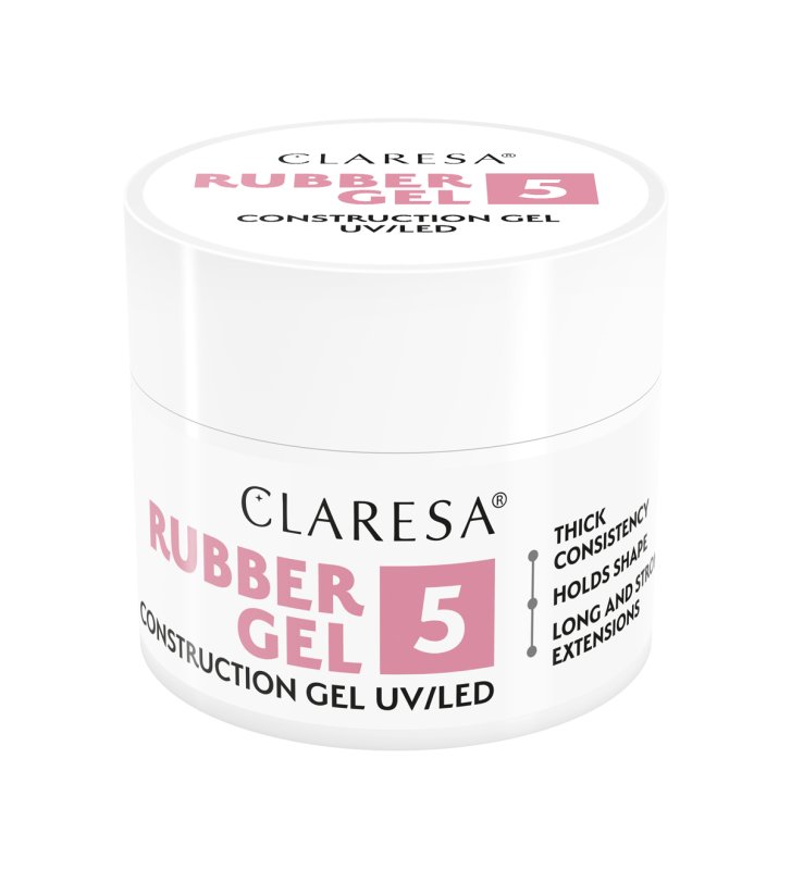 Rubber Gel od Claresa to produkt o wyjątkowych właściwościach. Jego formuła jest gęsta i odporna na temperaturę otoczenia, dzięki czemu doskonale nadaje się do konstrukcji paznokcia i przedłużania płytki. Możesz mieć pewność, że nawet w upalne dni żel będzie zachowywać się tak samo, a Ty zbudujesz perfekcyjny szkielet za każdym razem. Rubber Gel charakteryzuje się także tiksotropią (czyli pamięcią cieczy), co sprawia, że po nałożeniu na paznokieć nie spływa na skórki. Masa przy pracy pędzelkiem doskonale się poziomuje, pozwalając na równomierne rozłożenie produktu nawet osobom początkującym. Żel kryje i koryguje niedoskonałości płytki, dzięki czemu może być stosowany solo, bez użycia lakieru hybrydowego. Wystarczy baza i top. Paleta coverowych odcieni nude z pewnością przypadnie do gustu fankom naturalnych stylizacji.
