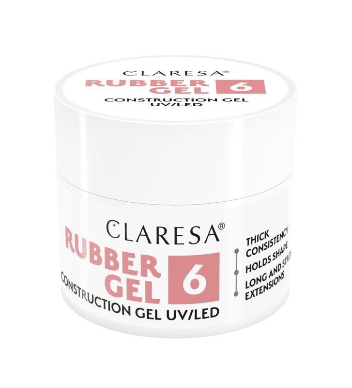 Rubber Gel od Claresa to produkt o wyjątkowych właściwościach. Jego formuła jest gęsta i odporna na temperaturę otoczenia, dzięki czemu doskonale nadaje się do konstrukcji paznokcia i przedłużania płytki. Możesz mieć pewność, że nawet w upalne dni żel będzie zachowywać się tak samo, a Ty zbudujesz perfekcyjny szkielet za każdym razem. Rubber Gel charakteryzuje się także tiksotropią (czyli pamięcią cieczy), co sprawia, że po nałożeniu na paznokieć nie spływa na skórki. Masa przy pracy pędzelkiem doskonale się poziomuje, pozwalając na równomierne rozłożenie produktu nawet osobom początkującym. Żel kryje i koryguje niedoskonałości płytki, dzięki czemu może być stosowany solo, bez użycia lakieru hybrydowego. Wystarczy baza i top. Paleta coverowych odcieni nude z pewnością przypadnie do gustu fankom naturalnych stylizacji.