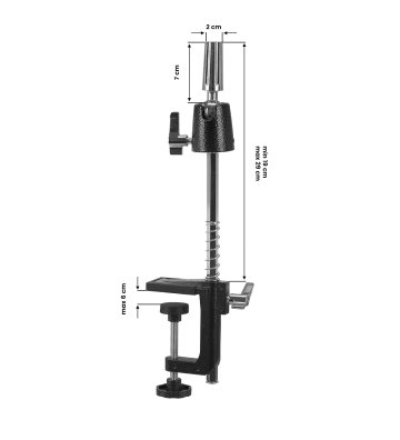 Minimalistyczny design oraz wytrzymała stalowa konstrukcja sprawiają, że statyw Gabbiano 41 jest odporny na uszkodzenia i wygodny w codziennym użytkowaniu. Uchwyt typu imadło z maksymalnym rozwarciem do 6 cm umożliwia szybkie i stabilne przymocowanie do większości blatów – zarówno w warunkach szkolnych, jak i profesjonalnych. Ergonomiczna forma i wysokiej jakości materiały przekładają się na trwałość i komfort użytkowania.