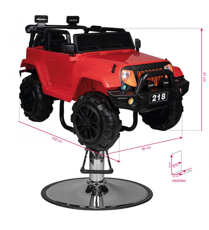 Fotelik fryzjerski dla dzieci Range Rover czerwony to idealne rozwiązanie dla salonów fryzjerskich, które chcą zapewnić swoim najmłodszym klientom maksymalny komfort i przyjemność podczas wizyty.