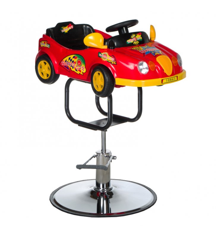 Introducing the Children's Hairdressing Chair Car BCH-608 in a vibrant red color, designed to captivate and entertain your little clients. This unique hairdressing chair from Beauty Systems is shaped like a racing car and comes equipped with a horn and lights, adding an element of excitement to every haircut