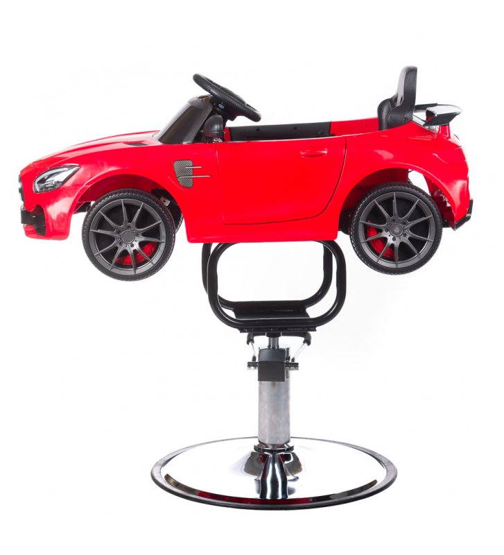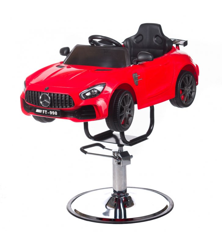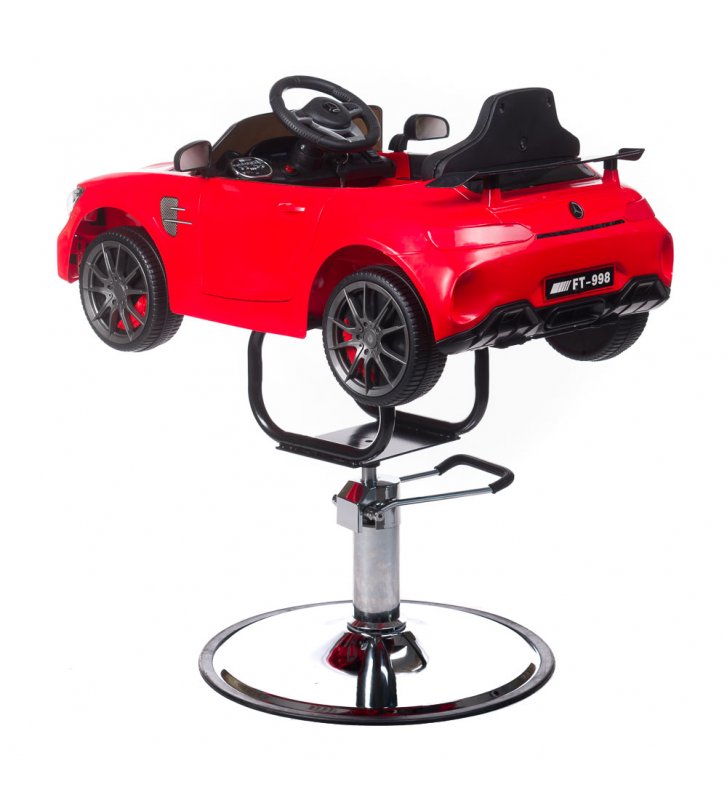 Introducing the Children's Hairdressing Chair Car BCH-608 in a vibrant red color, designed to captivate and entertain your little clients. This unique hairdressing chair from Beauty Systems is shaped like a racing car and comes equipped with a horn and lights, adding an element of excitement to every haircut