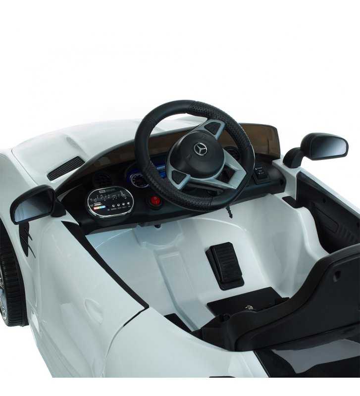 fotel fryzjerski Mercedes jest wyposażony w klakson, światła i melodyjki.