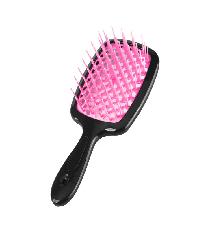The HS brush perfectly combs any type of hair without pulling or pulling it. Thanks to the flexibility of the teeth and the holes in the base, it is also suitable for drying and styling, dispersing the air evenly while massaging the scalp.