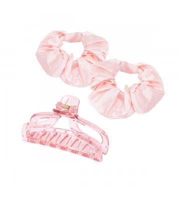 The set includes: A hair curler, a hair clip, two hair elastics (wraps).