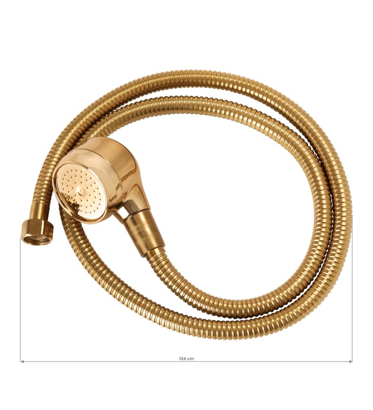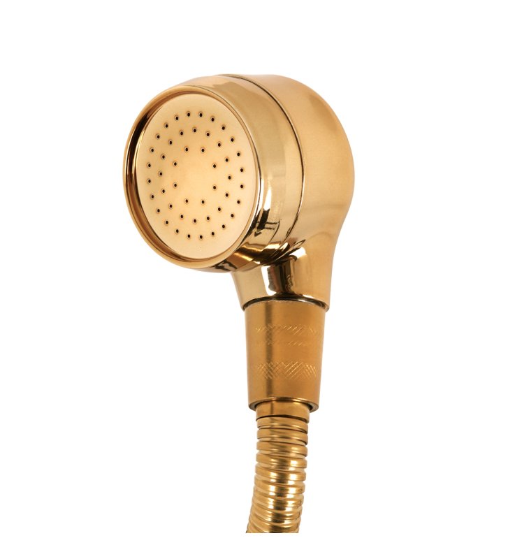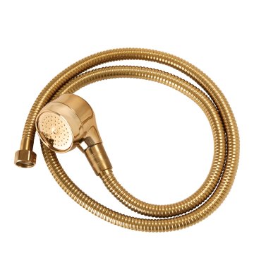 Elegancka słuchawka natryskowa w odcieniach złota do zastosowania w myjniach fryzjerskich. Zestaw zawiera słuchawkę wraz ze standardowym gniazdem montażowym do misy oraz giętkim wężem. Zapewnia to szybki i bezproblemowy montaż. Produkt pasuje do większości myjni i baterii mieszakowych dostępnych na rynku. Produkt jest wykonany z wysokiej jakości materiałów, co zapewnia długotrwałą trwałość i niezawodność. Dzięki temu będziesz mógł cieszyć się jego funkcjonalnością przez wiele lat.