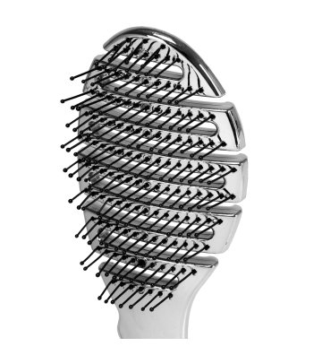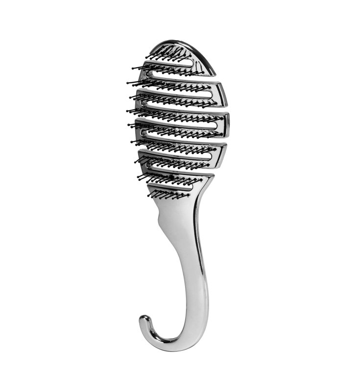 Szczotka P-1032 doskonale sprawdza się podczas rozczesywania zarówno włosów naturalnych, jak i przedłużanych, minimalizując ryzyko szarpania końcówek. Można jej używać zarówno na mokrych, jak i suchych włosach. Ażurowy korpus z elastycznego tworzywa sztucznego zapewnia efektywną cyrkulację powietrza podczas suszenia, co chroni włosy przed wysoką temperaturą i zwiększa komfort podczas stylizacji. Dodatkowo, szczotka doskonale dopasowuje się do kształtu głowy. Trzonek z wieszaczkiem umożliwia wygodne przechowywanie szczotki, co czyni ją nie tylko funkcjonalnym narzędziem do codziennej pielęgnacji, ale także estetycznym elementem wyposażenia.