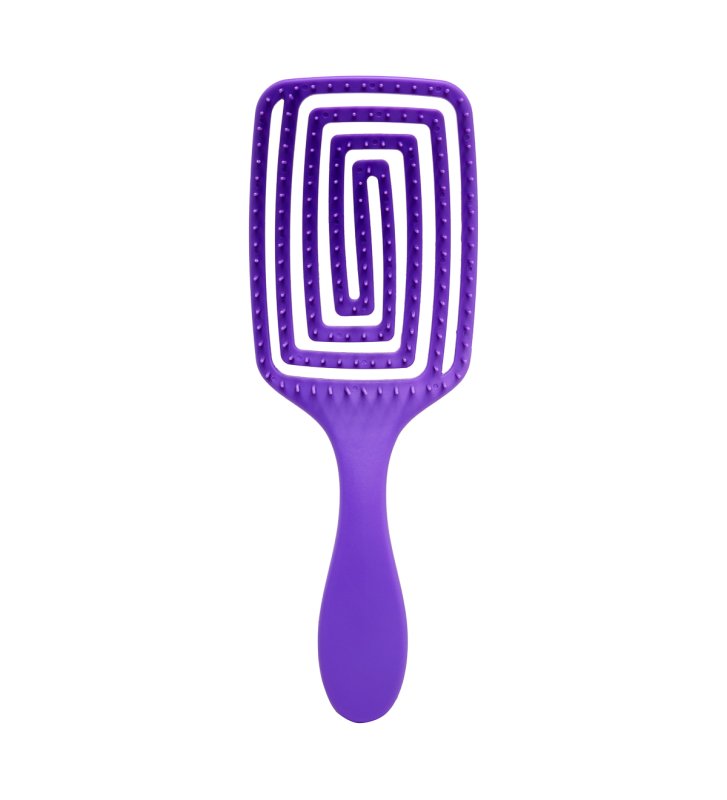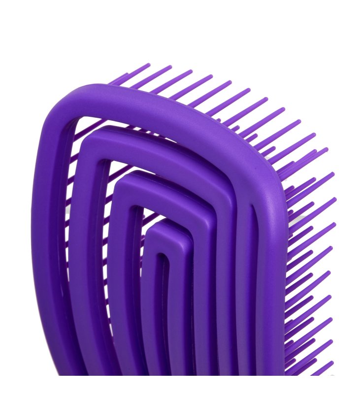 Giętka szczotka O-327 to elastyczne narzędzie idealnie dopasowujące się do kształtu głowy, zapewniające bezbolesne rozczesywanie włosów zarówno na sucho, jak i na mokro, bez wyrywania ich. Wyposażona w ażurowy korpus, który umożliwia o wiele bardziej efektywną cyrkulację powietrza podczas suszenia, co przekłada się na lepszą ochronę włosów przed wpływem wysokich temperatur oraz poprawia komfort modelowania ich, a ergonomiczny trzonek zapewnia wygodę trzymania. Szczotka doskonale sprawdza się także przy rozprowadzaniu masek i odżywek, jednocześnie zapewniając masaż głowy, co pobudza krążenie krwi. Model ten jest odpowiedni dla każdego rodzaju włosów, w tym gęstych i puszących się.