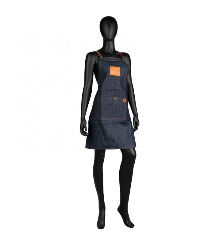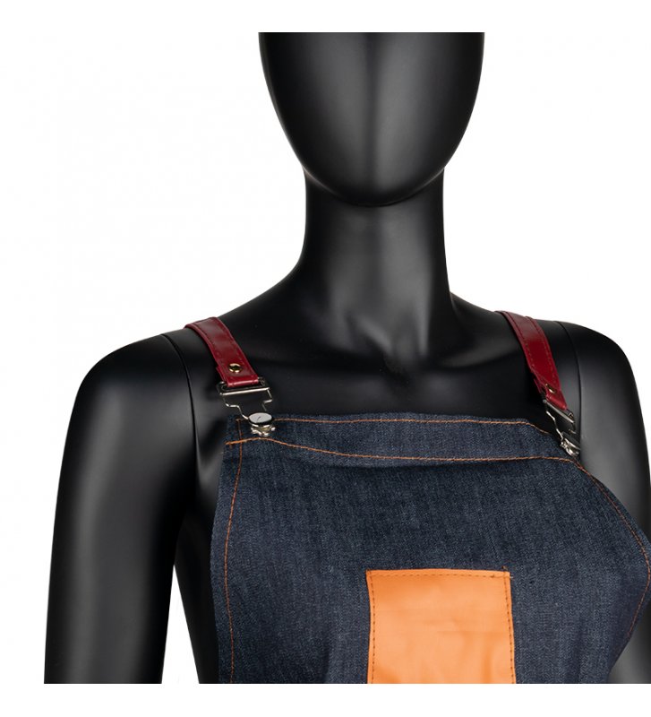 Denim barber apron with leather-like inserts not only looks great, but is also of high quality. It is one size fits all thanks to its unique design with adjustable straps that can be removed for easier cleaning.