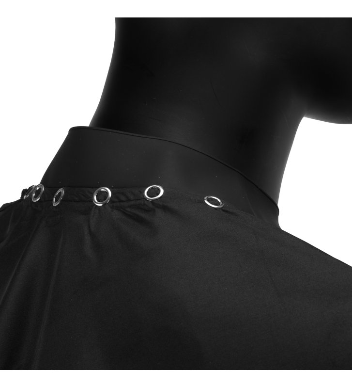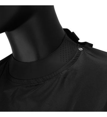 Produkt wykonany jest z wodoodpornego materiału, który pozwala na bezproblemowe czyszczenie i odpowiednio zabezpiecza przed wszelkiego rodzaju zachlapaniami. Dzięki uniwersalnemu rozmiarowi oraz możliwości dopasowania dzięki zatrzaskom przy szyi, sprawdzą się u każdego klienta, niezależnie od jego wzrostu, zapewniając komfort w trakcie przeprowadzanego zabiegu.