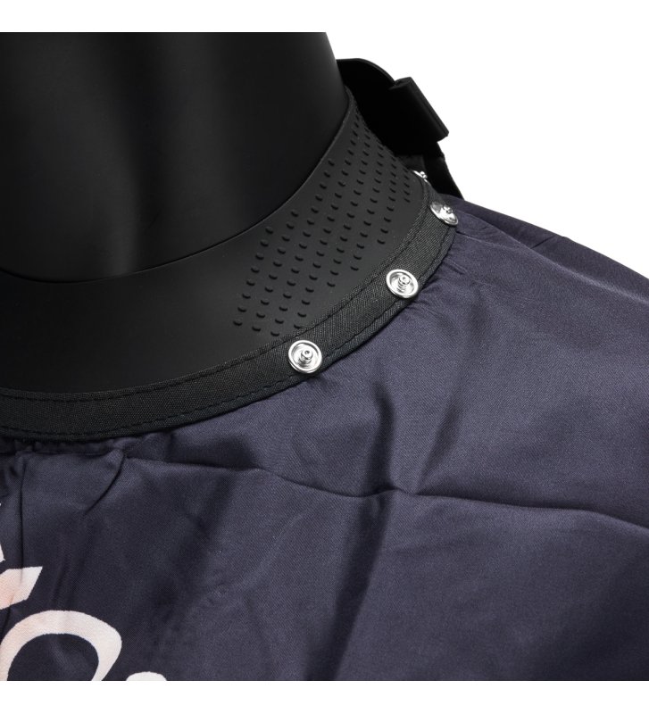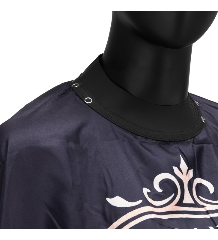 Produkt wykonany jest z czarnego wodoodpornego materiału, który pozwala na bezproblemowe czyszczenie i odpowiednio zabezpiecza przed wszelkiego rodzaju zachlapaniami. Dzięki uniwersalnemu rozmiarowi oraz możliwości dopasowania dzięki zatrzaskom przy szyi, sprawdzą się u każdego klienta, niezależnie od jego wzrostu, zapewniając komfort w trakcie przeprowadzanego zabiegu.