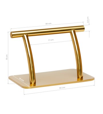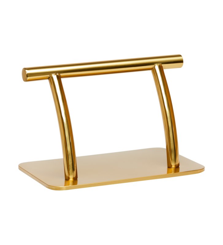 The L005S hairdressing footrest is a very important element in every hairdressing salon. It gives the client the opportunity to support his legs during the treatment, thanks to which the client takes the most comfortable position . The footrest placed on the floor has a special non-slip base . Made of high-quality materials in shades of gold , the product is stable and ensures safety for the client and ergonomics for the hair stylist. The minimalist look makes the footstool fit very well with the decor of any interior.