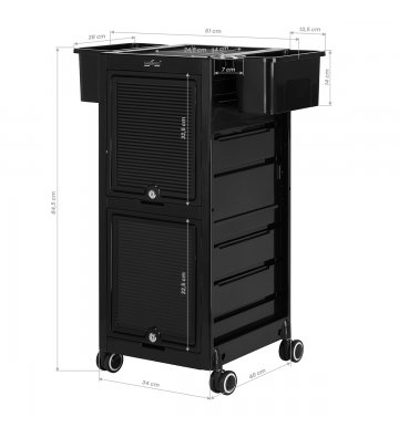 The simple style of the helper makes it suitable for any interior. Made of easy-to-clean, durable material, the furniture in shades of black will significantly improve the work in any beauty salon. Rubberized wheels ensure mobility, allowing for free and smooth relocation depending on the needs - during treatments around the hairdresser's chair or putting it away after the service. They can also be easily dismantled if necessary. This helper will work especially for people who value functionality very much.