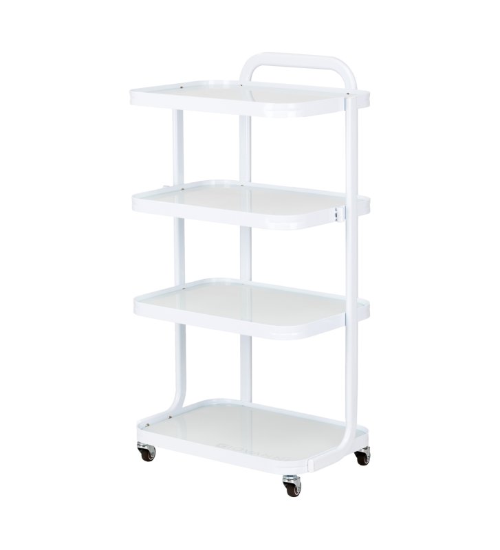 Stolik kosmetyczny Giovanni 6701 to praktyczny mebel, który doskonale sprawdzi się w każdym salonie kosmetycznym czy gabinecie SPA. Konstrukcja mebla sprawia, że jest stabilny, ale jednocześnie lekki, co przekłada się na efektywność pracy. Cztery szklane półki umożliwiają wygodne przechowywanie i organizację kosmetyków, akcesoriów oraz sprzętu niezbędnego podczas zabiegów. Minimalistyczne wykończenie dodaje wnętrzom profesjonalnego charakteru.