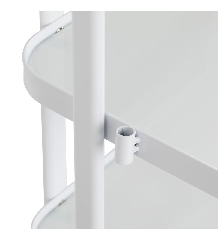 Prosta konstrukcja, stelaż z trwałego aluminium w odcieniach bieli oraz szklane półki sprawiają, że stolik jest zarówno estetyczny, jak i łatwy do utrzymania w czystości. Cztery kółka pozwalają na swobodne przestawianie, co znacząco ułatwia pracę w salonie, a solidne materiały gwarantują długotrwałą wytrzymałość i stabilność. Eleganckie wykończenie dodaje mu wyjątkowego wyglądu, podnosząc estetykę każdego wnętrza.