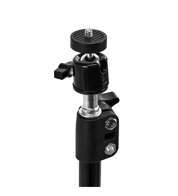 The light and durable construction of the tripod with non-slip feet ensures significant comfort and stability during use. The telescopic frame allows you to lock the height in the range of 40-160 cm , making it easier to adjust the lighting to your needs. The small ball head included in the set allows easy installation of the lamp and free adjustment of its angle .