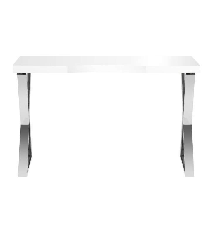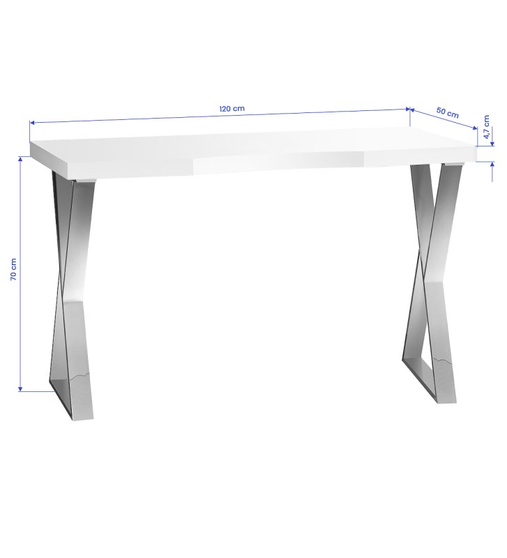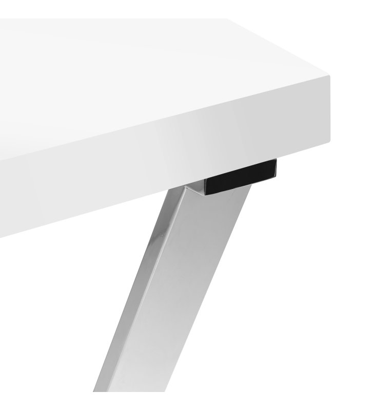 The white high-gloss top and geometric , silver legs give it lightness and a modern character . Thanks to its light form, the desk will work well in both intimate and spacious interiors, emphasizing their exclusive character . It is an excellent investment in aesthetics and comfort of everyday work .