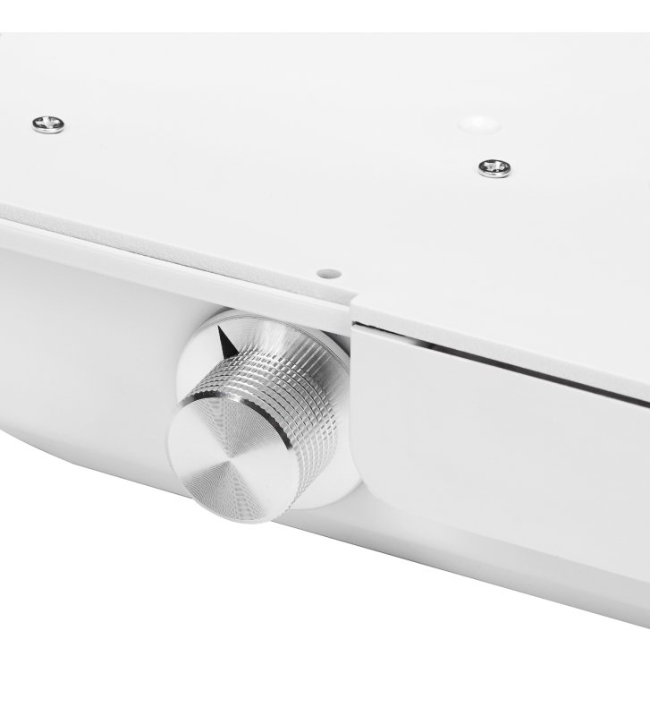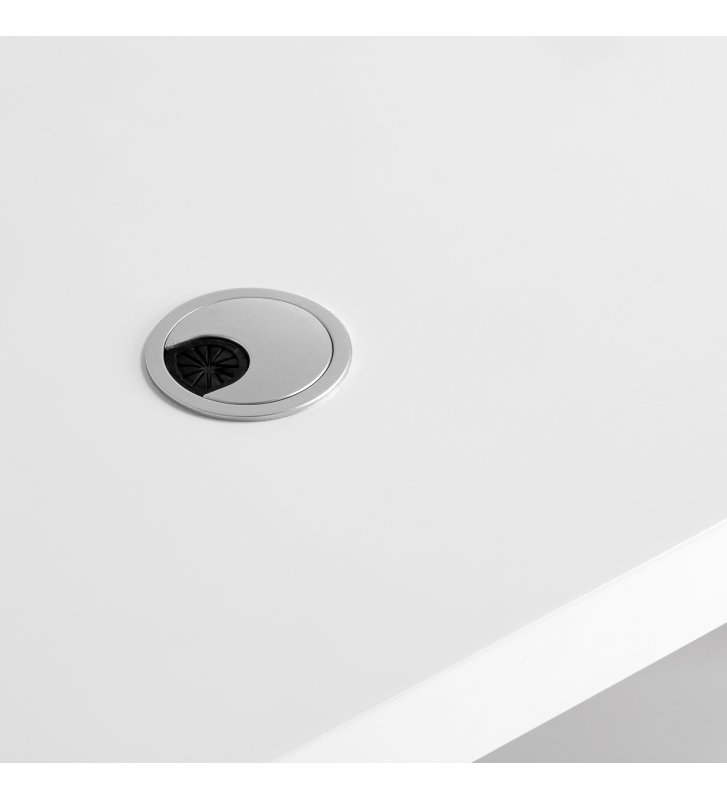 Prosta forma biurka w odcieniach bieli nadaje wnętrzu nowoczesny, a zarazem elegancki charakter. Chromowane uchwyty szuflad oraz detale przy półkach podkreślają jego stylowy wygląd. Przemyślane rozwiązania, takie jak zintegrowane otwory na przewody i miejsce na montaż dodatkowych akcesoriów, pomagają utrzymać porządek i zwiększają komfort pracy. Stabilna konstrukcja sprawia, że mebel sprawdzi się zarówno w niewielkich gabinetach, jak i bardziej przestronnych salonach. To funkcjonalne i estetyczne rozwiązanie dla osób ceniących wygodę i funkcjonalność.