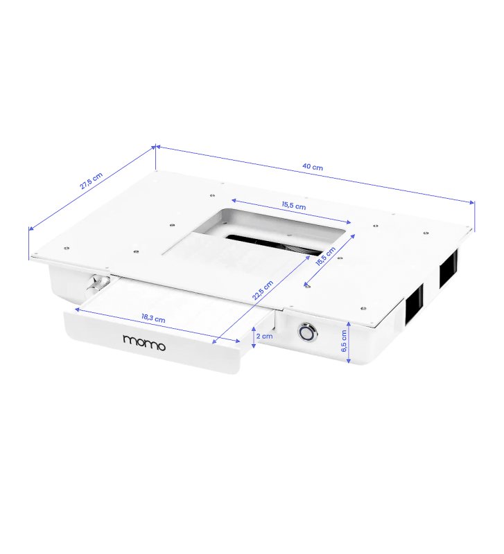 Biurko kosmetyczne Momo 03 z pochłaniaczem to połączenie funkcjonalności i minimalistycznego designu, stworzone z myślą o profesjonalistach ceniących wygodę i estetykę. Prosta, elegancka forma nadaje mu nowoczesnego charakteru, a szeroki blat o wysokim połysku zapewnia komfort podczas codziennych zabiegów. Przelotki na kable pomagają utrzymać porządek na stanowisku pracy. Stabilna konstrukcja oraz pojemne szuflady umożliwiają sprawną organizację narzędzi, produktów i akcesoriów, , co zwiększa wydajność i komfort pracy.