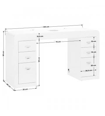 The functional beauty desk 314 is perfect for beauty salons, providing a comfortable work space . The solid construction of the furniture guarantees stability , and the spacious drawers have been appropriately designed to facilitate access to the necessary tools , which translates into work efficiency. The simple design gives it a professional character.