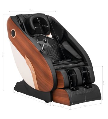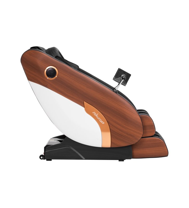 The comfortable interior of the armchair is covered with pleasant-to-touch imitation leather in shades of dark brown. The use of such material makes it highly resistant to moisture and easy to clean . The combination of synthetic leather imitating wood and structural material in shades of white on the outer parts of the armchair makes the product eye-catching , looking original and elegant. Carefully made hems give it a stylish look, and the solid construction guarantees long use. A compact model with an aesthetic finish will fit perfectly into any interior. The Sakura Classic 306 massage chair is a perfect way to relax at any time , especially after an exhausting day or a hard workout.