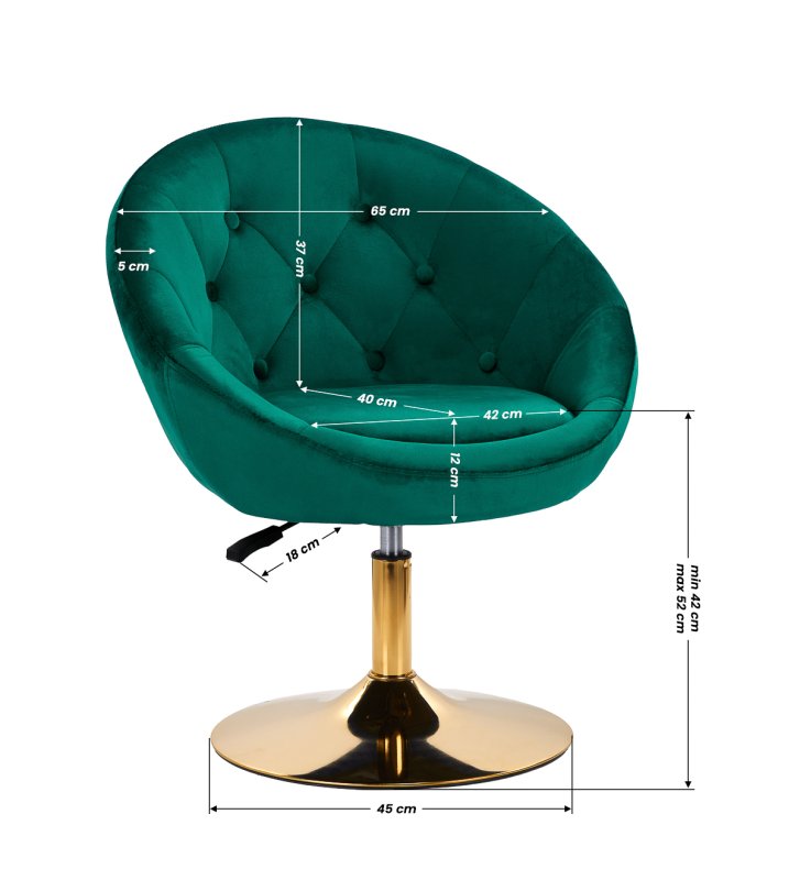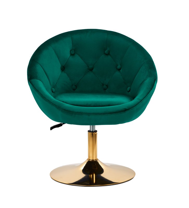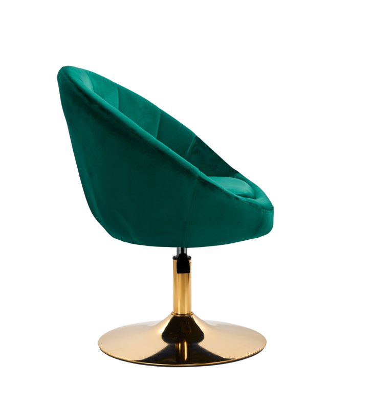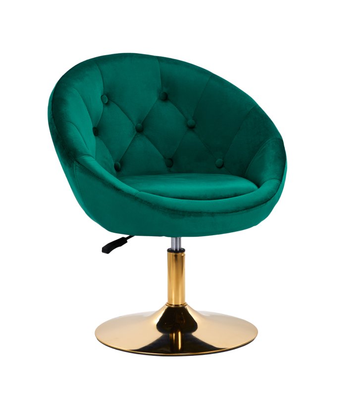 The luxurious finish makes the furniture eye-catching . Pleasant to the touch, velvet upholstery in shades of green and decorative quilting give it a unique character . A stable, round base in shades of gold adds elegance , perfectly matching the velvet. Aesthetics of workmanship, comfort of use, ergonomically profiled backrest and aesthetic quilting make the chair meet the requirements of even the most demanding users .