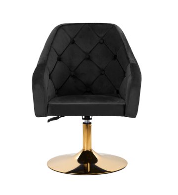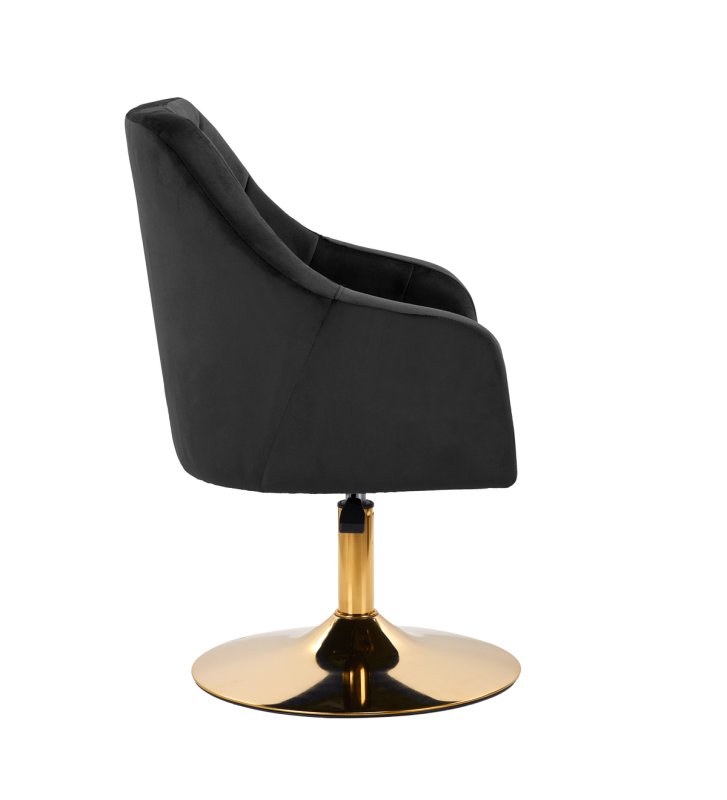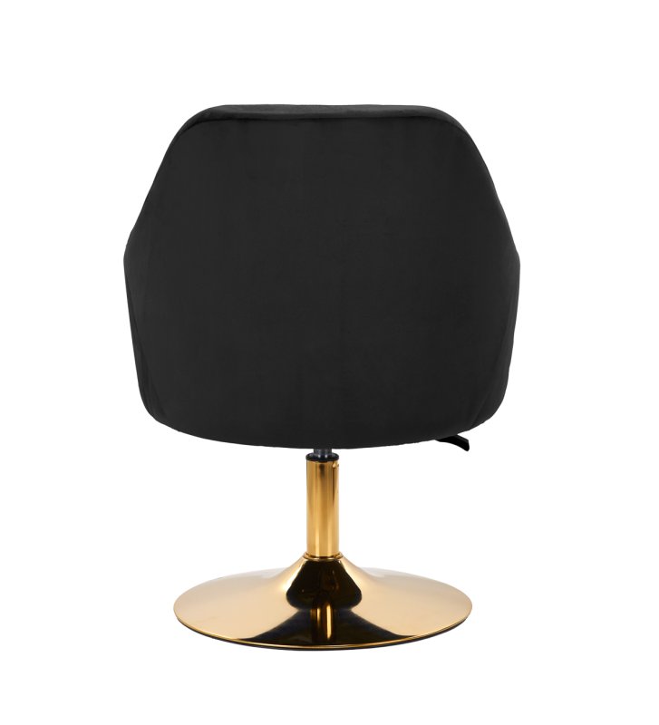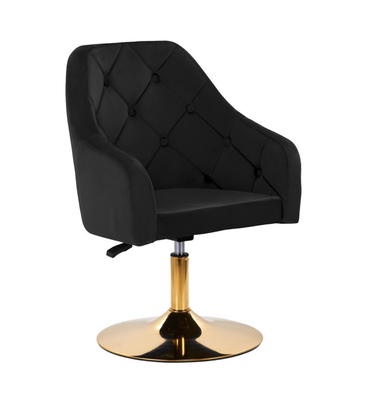 Ciekawy design nadaje krzesłu wyjątkowego charakteru. Przyjemne w dotyku, welwetowe obicie w odcieniach czerni wraz z ozdobnym pikowaniem sprawiają, że będzie ozdobą każdego wnętrza. Stabilna, okrągła podstawa w odcieniach złota dodaje elegancji, idealnie komponując się z welwetem. Estetyka wykonania, komfortowo osadzone podłokietniki, ergonomicznie wyprofilowane oparcie i estetyczne pikowanie sprawiają, że krzesło spełni wymagania nawet najbardziej wymagających użytkowników.