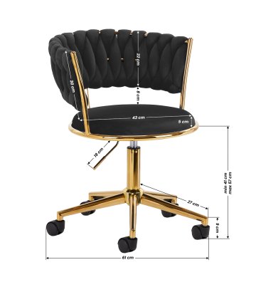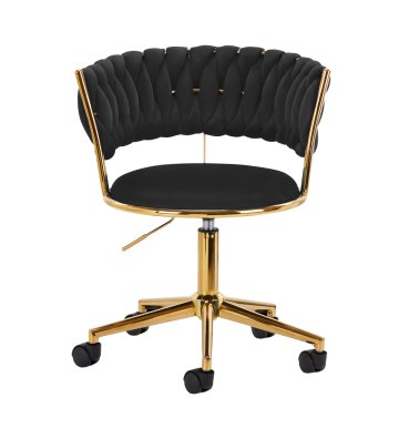 The finish makes the furniture eye-catching . The velvet upholstery in shades of black, pleasant to the touch, gives it a unique character. The base in shades of gold adds elegance, perfectly matching the velvet. Functional wheels ensure mobility, making it easier to move the chair and move around the living room during work. Careful workmanship, comfort of use and aesthetically interwoven material on the profiled backrest make the chair meet the requirements of even the most demanding users .