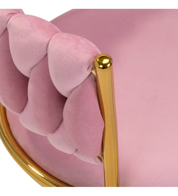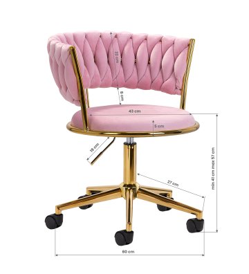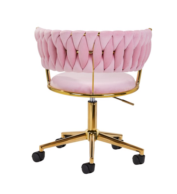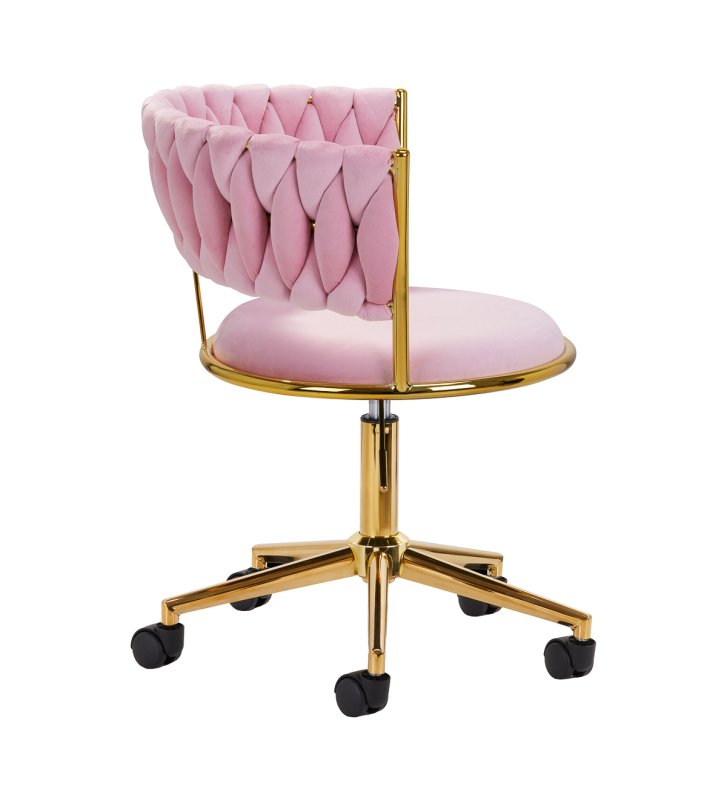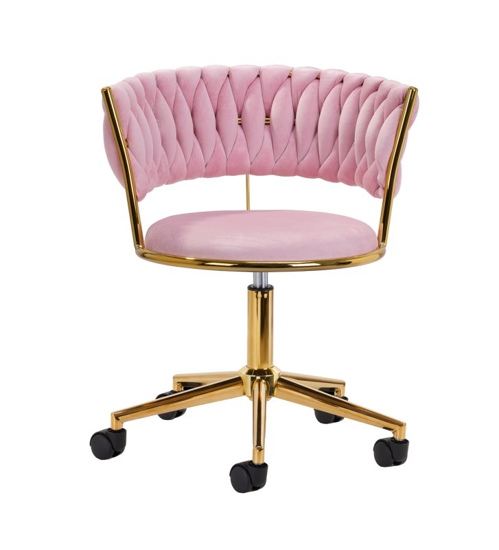 The finish makes the furniture eye-catching . The velvet upholstery in shades of pink, pleasant to the touch, gives it a unique character. The base in shades of gold adds elegance, perfectly matching the velvet. Functional wheels ensure mobility, making it easier to move the chair and move around the living room during work. Careful workmanship, comfort of use and aesthetically interwoven material on the profiled backrest make the chair meet the requirements of even the most demanding users .