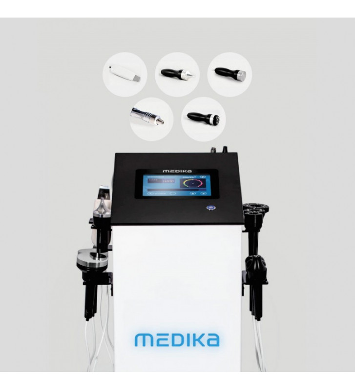 Premium multifunction device by Medika. 5in1 Cavitation peeling, ultrasounds, mesotherapy, liposuction, dermomassage. Compact housing, the possibility of retrofitting the device with any modules.
