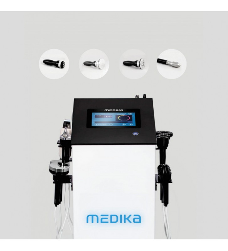 Premium multifunction device by Medika. 6in1 Cavitation peeling, ultrasounds, mesotherapy, microdermabrasion, liposuction, dermomassage. Compact housing, the possibility of retrofitting the device with any modules.