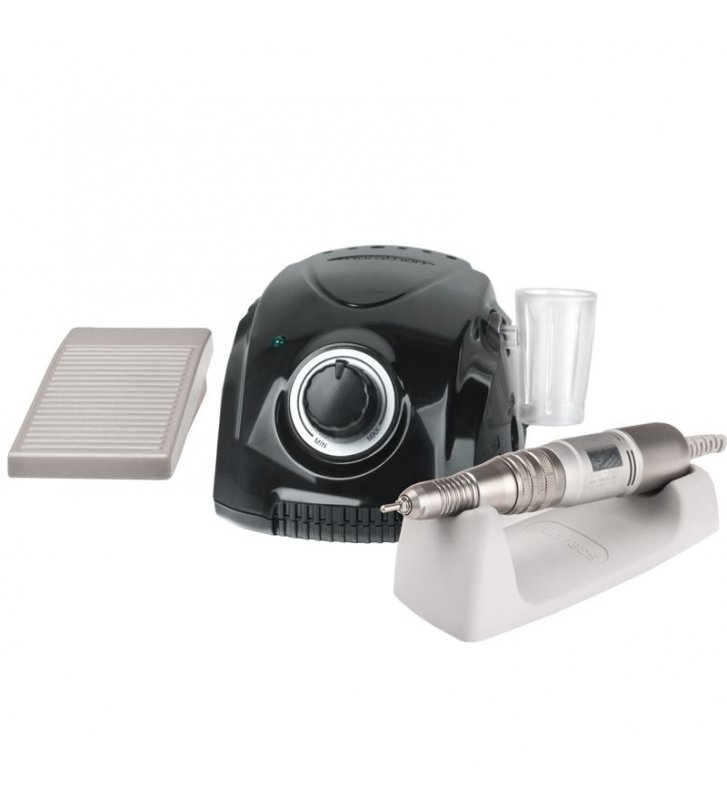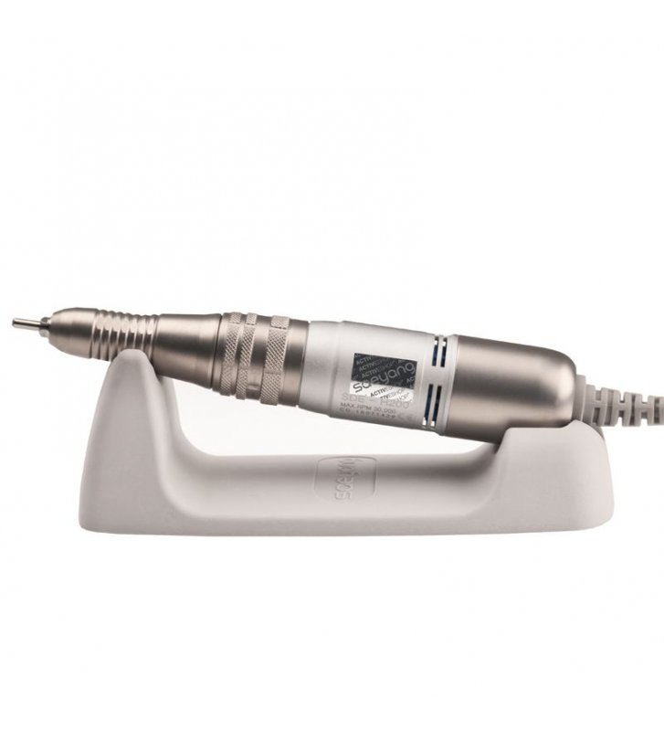This milling machine can be operated both manually and with a foot thanks to the included foot drive. A very good quality head is distinguished by a torque of 2.9 Ncm and a speed in the range of 0 to 30 thousand revolutions. The set includes a holder for the head, thanks to which we can put it down at any time during the procedure in a safe and stable place.