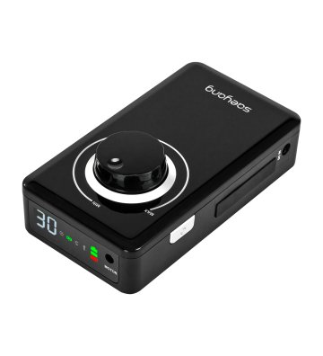 Using the knob, you can adjust the speed of the head up to 30,000 revolutions per minute , which allows for efficient adjustment to individual needs and, consequently, comfortable performance of a wide range of treatments. Useful buttons located on the sides allow you to easily switch the control to the foot drive, stop the device (pause function), and change the direction of rotation, which provides full control over the milling machine and makes it easier to adjust its operation to specific services. LED indicators allow you to monitor the status of the equipment - they provide information about the direction of rotation, battery status, foot drive activation and pause. The device is equipped with overload protection with a warning LED signal, which protects the motor against overheating, thus ensuring greater operational safety and protecting the equipment against damage.