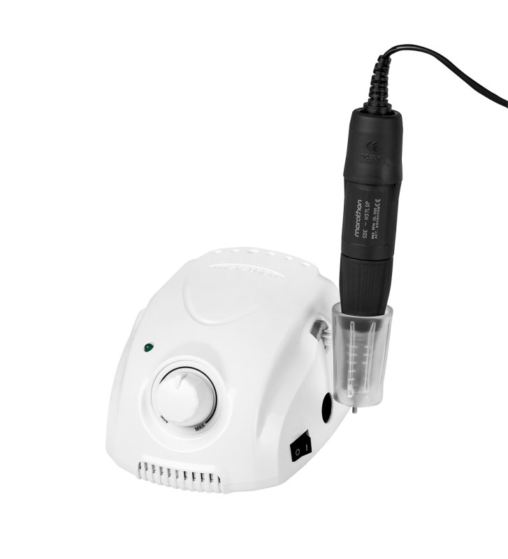 The compact Saeyang Marathon K38 Crafien mini cordless milling machine is a practical device that is perfect for the work of mobile nail stylists . It facilitates the preparation of nails and cuticles, thus creating an ideal basis for creating further styles. It allows you to work comfortably for up to 8 hours on a single charge .