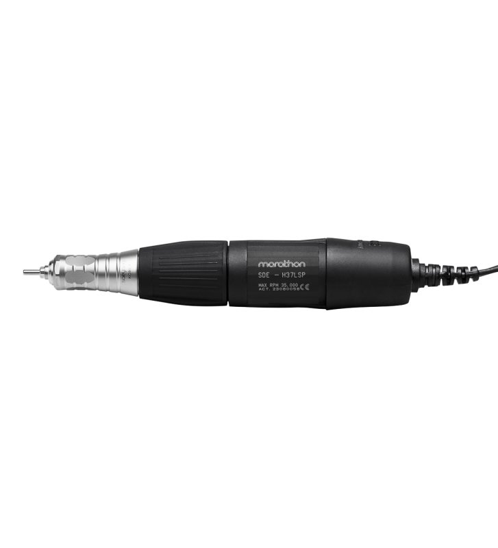 Precyzyjna głowica H37LSP doskonale leży w ręce, co gwarantuje wysoki komfort użytkowania. Osiąga maksymalną prędkość 35 000 obrotów na minutę, wpływając na efektywność pracy. Głowica została wyposażona w prosty w obsłudze system Twist-Lock, co pozwala na szybką i płynną wymianę frezów. Element jest odpowiednio wyważony i ergonomicznie wyprofilowany, a dodatkowo drgania głowicy zostały ograniczone, dzięki czemu nawet wielogodzinna praca z frezarką nie męczy nadmiernie ręki. Plastikowa obudowa ogranicza przepływ ciepła, dzięki czemu nagrzewanie urządzenia nie jest odczuwalne. Elastyczny kabel sprężynka zapewnia wysoki komfort pracy, osiągając nawet 135 cm długości przy znacznym rozciągnięciu.